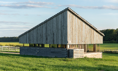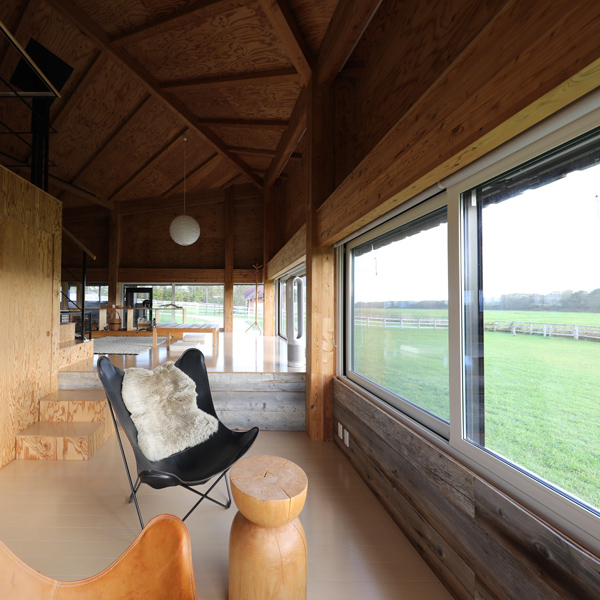 “RETREAT IN NATURE(日常生活から離れるための隠れ家)”をテーマに、居住空間と牧草風景が生み出す対話を象徴した住まい。基礎部と屋根部によって定義されたひと繋がりの屋内の起伏が、周囲360°の大自然パノラマとそこに映る季節ごとの変化を居住者にもたらします。建設資材のエネルギー消費量を抑える仕組みや、積雪を考慮した高床といったサステナブルなデザインだけでなく、建設にあたっては、生成・運搬・建設に伴う炭素排出量を抑え、地域経済にも貢献できるよう、コンクリートの使用を極力控え、主に地域から産出される木材を使用。将来的な再利用も考慮し、容易に解体できるよう設計されています。