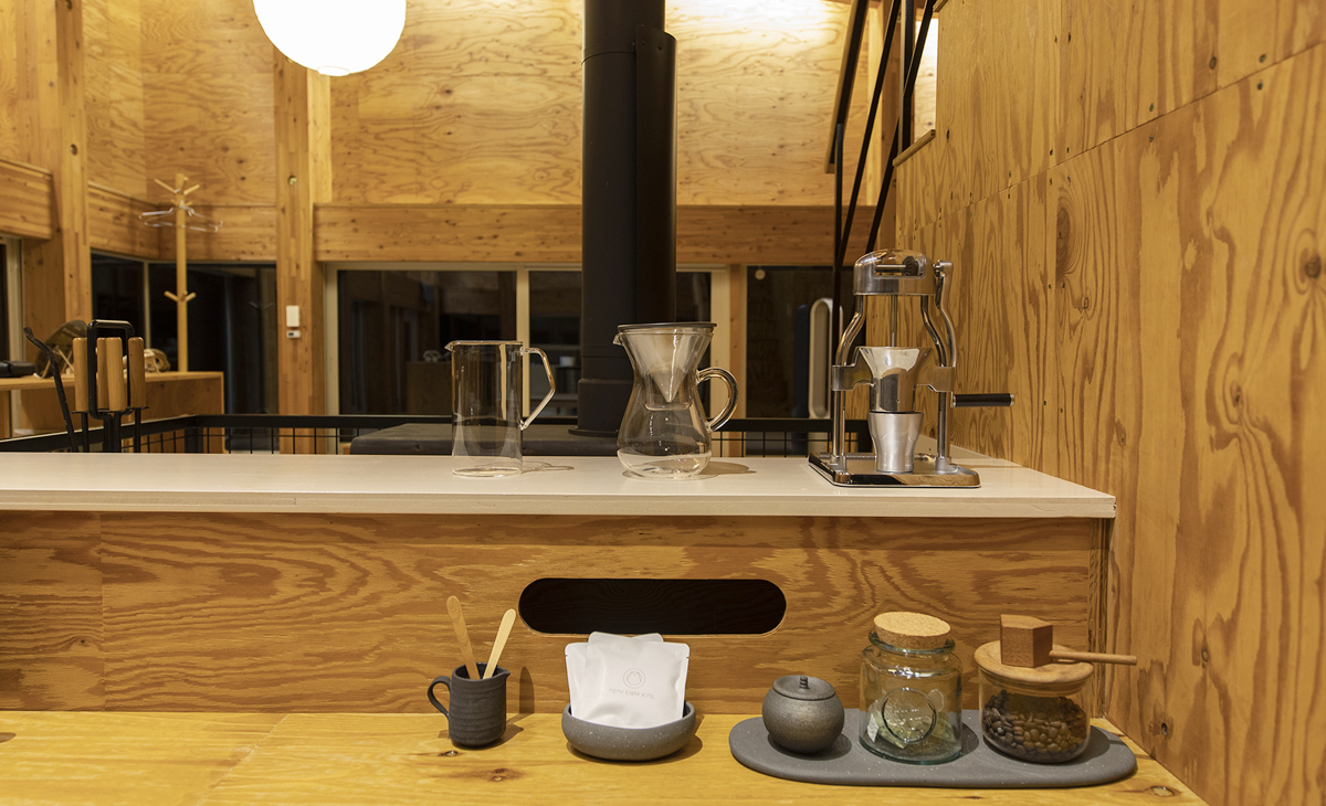 | 室内設備 | バスルーム、洗面台、シャワー付きトイレ、冷蔵庫、薪ストーブ、床暖房、扇風機、木製プレート、コップ、ワインオープナー、ワイングラス |